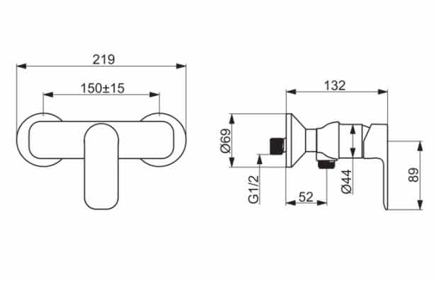 Hansa 5545 Einhebelmischer für die Dusche formschön und elegant.