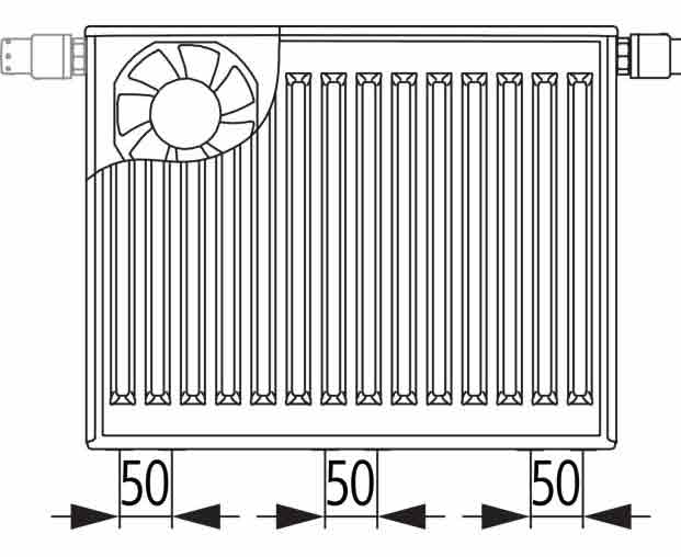 Benutzerfreundlichkeit: Einfache Bedienung über den Thermostatkopf und Möglichkeit zum manuellen Abschalten der Axialventilatoren.