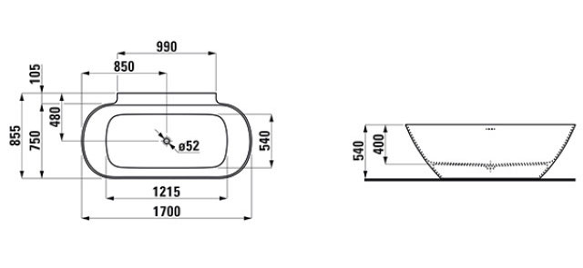 Downloads "Laufen Lua Badewanne 1700 mm wandgebunden aus Marbond"